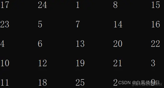 如图,有这样的一个魔方,1放在第一行的中间位置,随后输入1~n²