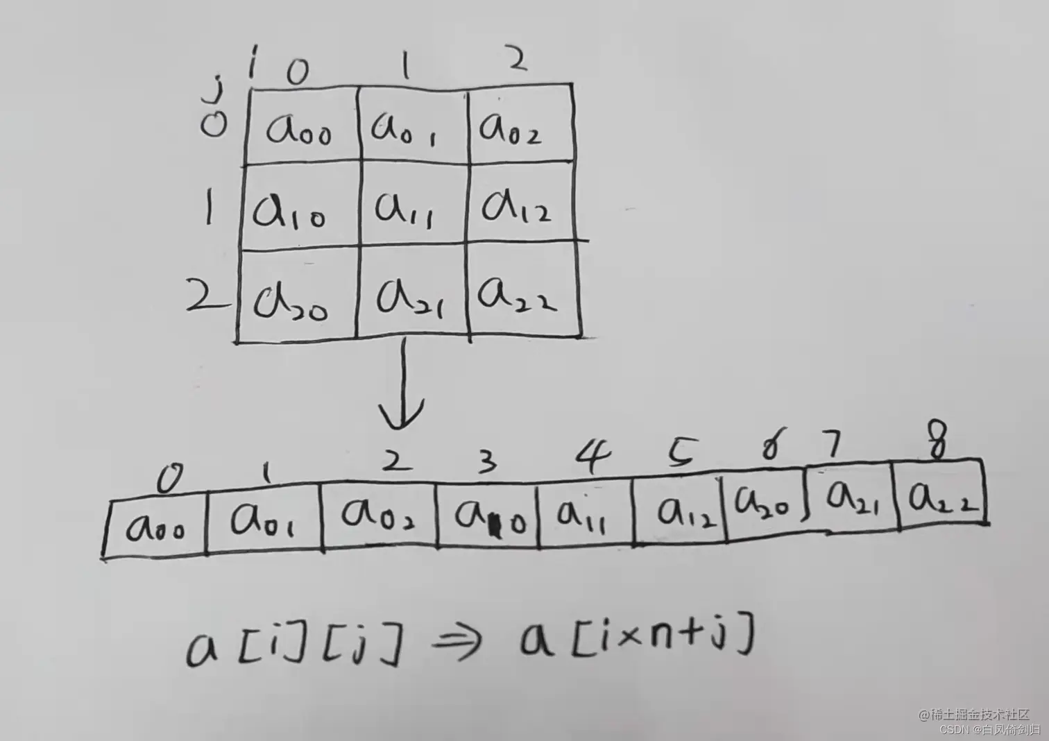 PS:有人会疑问,为什么看不到二维数组,因为二维数组其实是在一块连续的空间存放的,本质是一维数组,它们之间有转化: