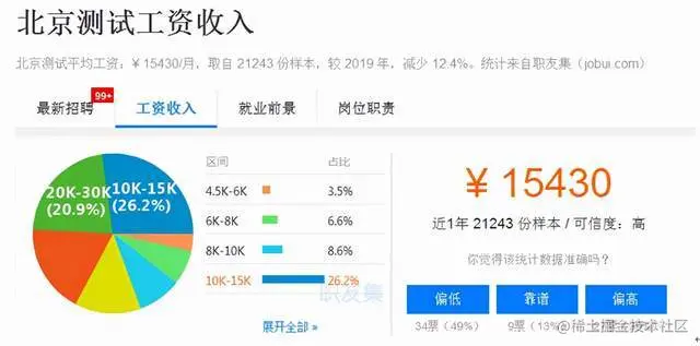 2020年的测试平均薪资