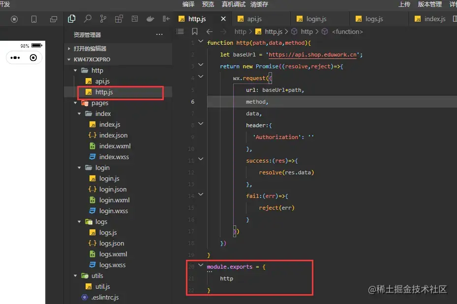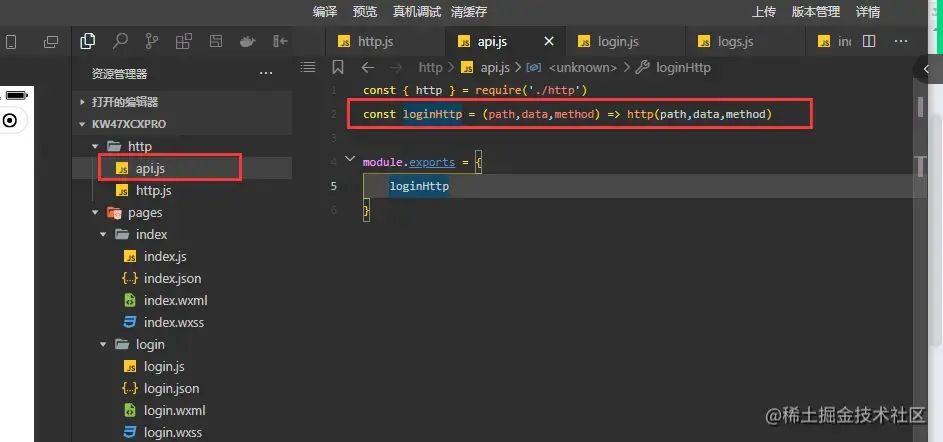 第一步建立http文件夹 再建立http.js 内容如下:
