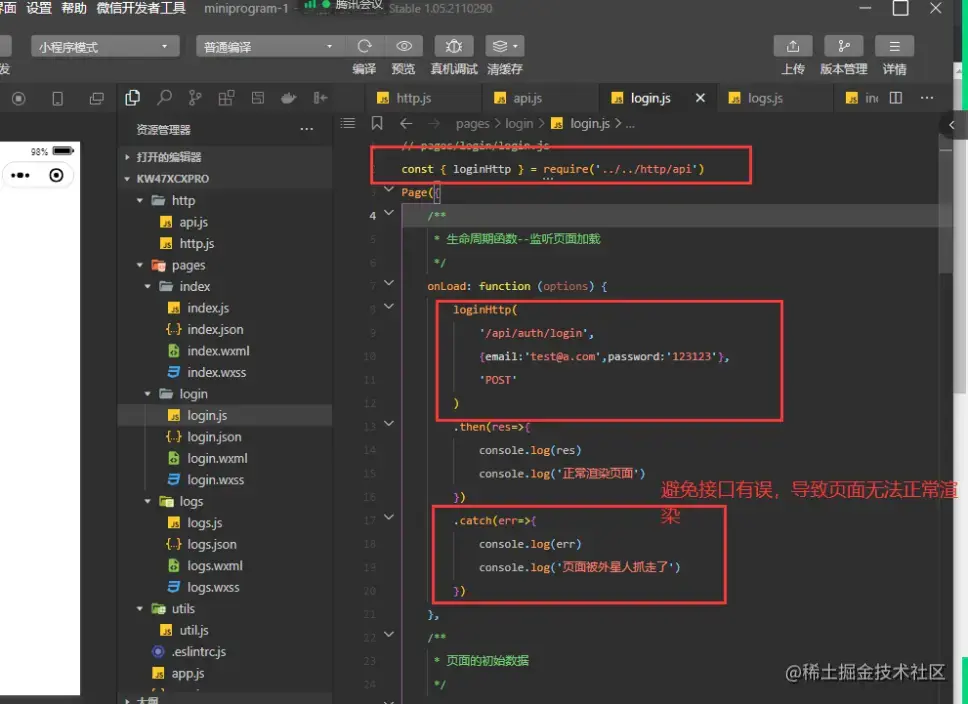 第三步在login页面调用接口: 具体内容如下: