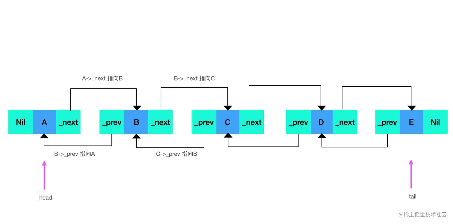 _tail->_next = nil; // 现在的尾节点的后继指针赋值为空
