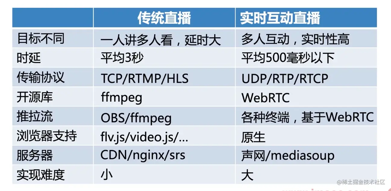 通过对比可以得出 实时互动直播的难度大于传统直播的结论.