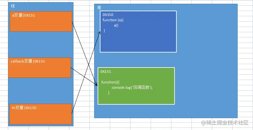 //4、执行函数时进行形参赋值 var a = callback 所以将callback变量的地址赋值给了a 由于a是一个函数 所以可以()