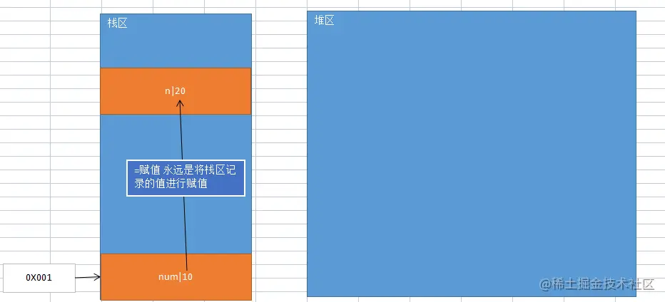 //栈区创建一个n变量 并且赋值为num变量的值