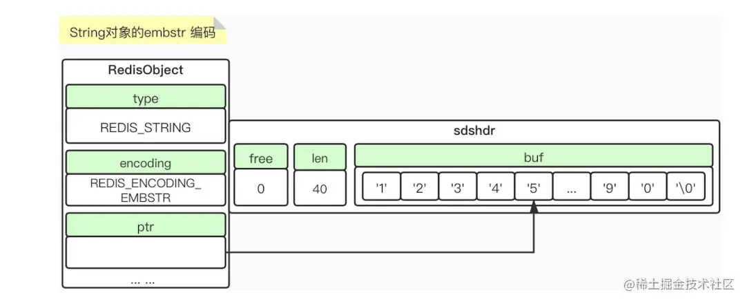 embstr 通过一次内存分配函数来分配一块连续的空间,包含着redisObject,sdshdr。所以执行速度快。