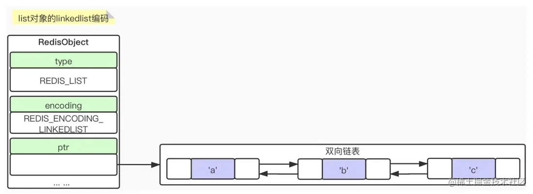 linkedlist编码列表对象,采用双向链表作为底层实现,每个列表节点保存一个列表中的元素。