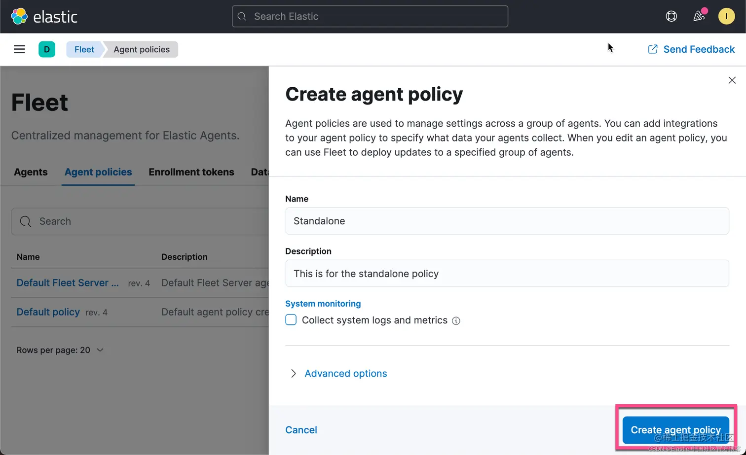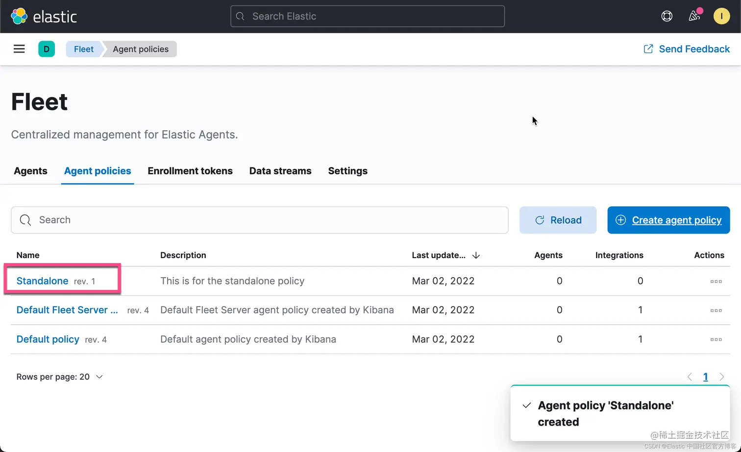 创建 standalone Elastic Agent 策略