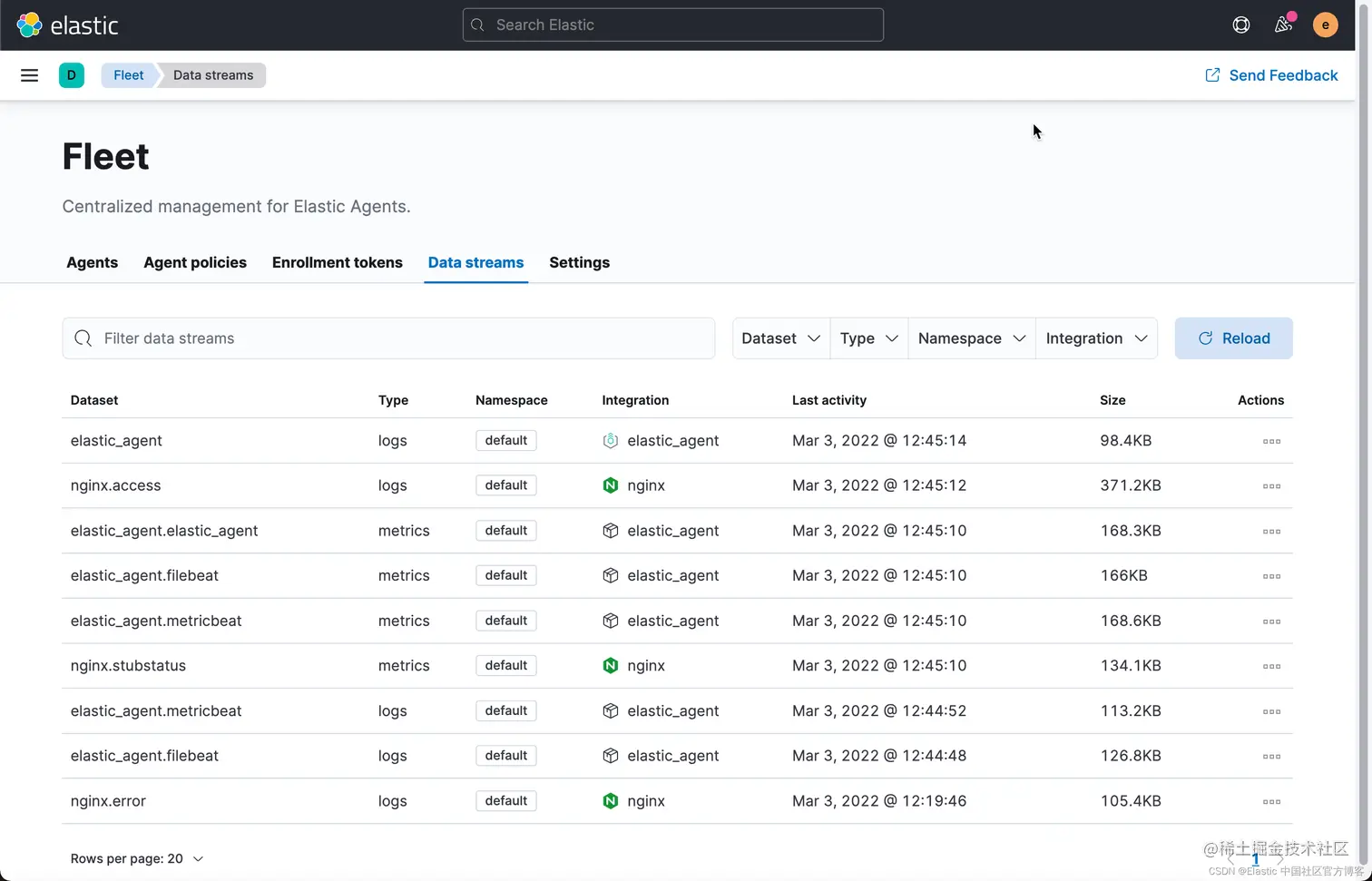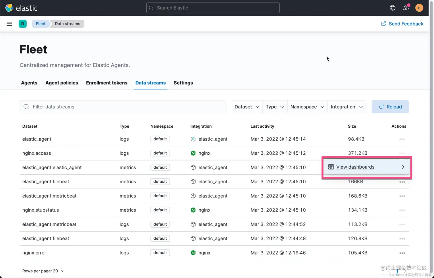 我们接着回到 Fleet 界面的 data stream 进行查看: