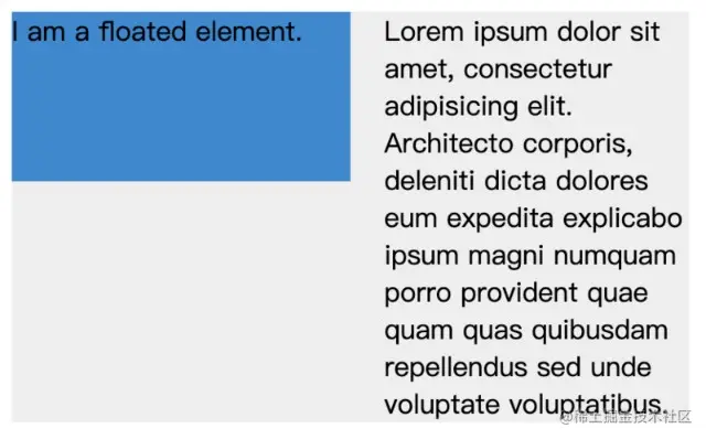 下例中一旦内部的红色盒子浮动,蓝色盒子就无法被撑起,高度会变成0。原因就是因为浮动元素创建了一个新的BFC,红色盒子成为了一个独立的容器,不会影响到外面的父元素了。它的定位规则不再受制于这个父元素了。只要在在父元素加上overflow:hidden可以清除浮动,原因就是overflow:hidden可以生成一个新的BFC,而这个浮动的子元素,被它所包含了,从而成为一个独立容器,它的 float 外溢不了了,外面的元素不再受其浮动的影响,从而达到了清除浮动的作用