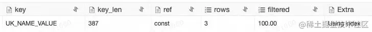 可以看到命中了索引,扫描行数为3,查询速度明显提高。