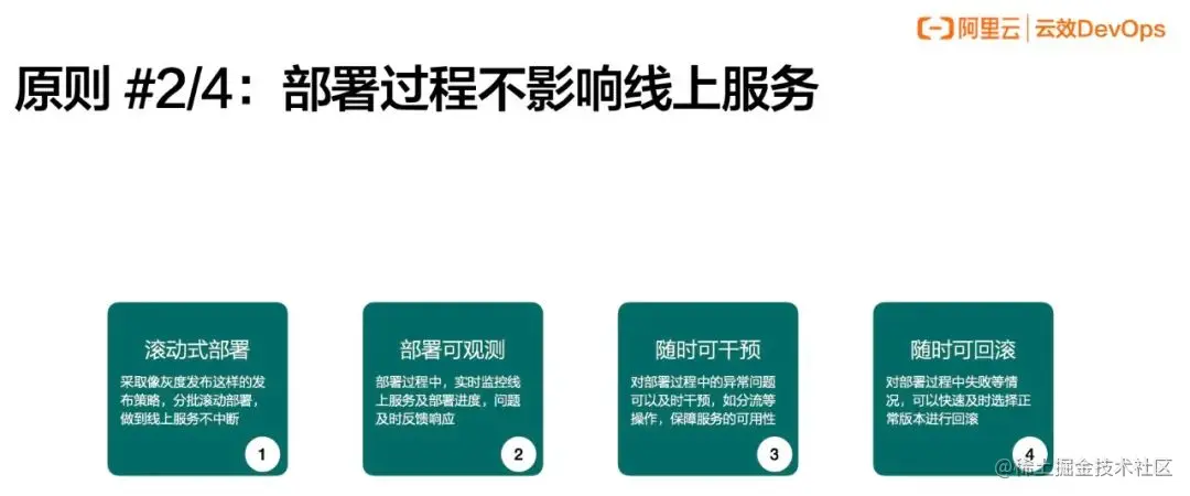 如果你的干预不能快速解决掉问题,这时就需要回滚了。要做到随时可回滚,是因为部署过程中有一些失败情况相应的修复成本特别高,快速回滚,才能保证服务不会受到影响。