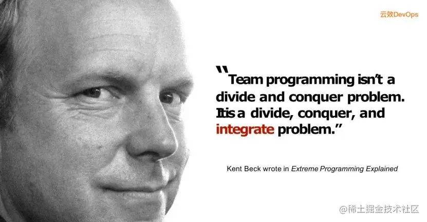 也就是说集成是一件非常重要的事情,因为我们在绝大多数软件开发协作过程当中都是把问题拆分解决再集成的过程。