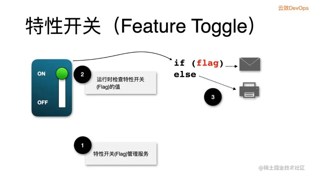 特性开关本质上是一类特殊的配置,一般以动态配置的形式下发。平时可以做持续部署,但开关保持关闭,等到客户端或者前端发布上去之后,再将开关打开。所以严格来说特性开关的打开本身也是一次发布,特性开关本身也需要版本管理。