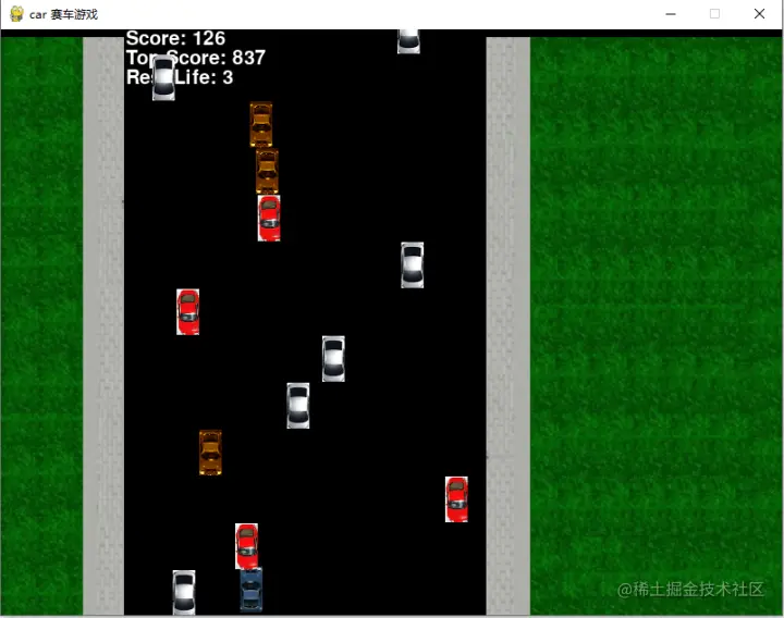 每个赛车游戏生命值三条消耗完即游戏结束。躲避相应的车子会加分。方向键左右即是移动键。