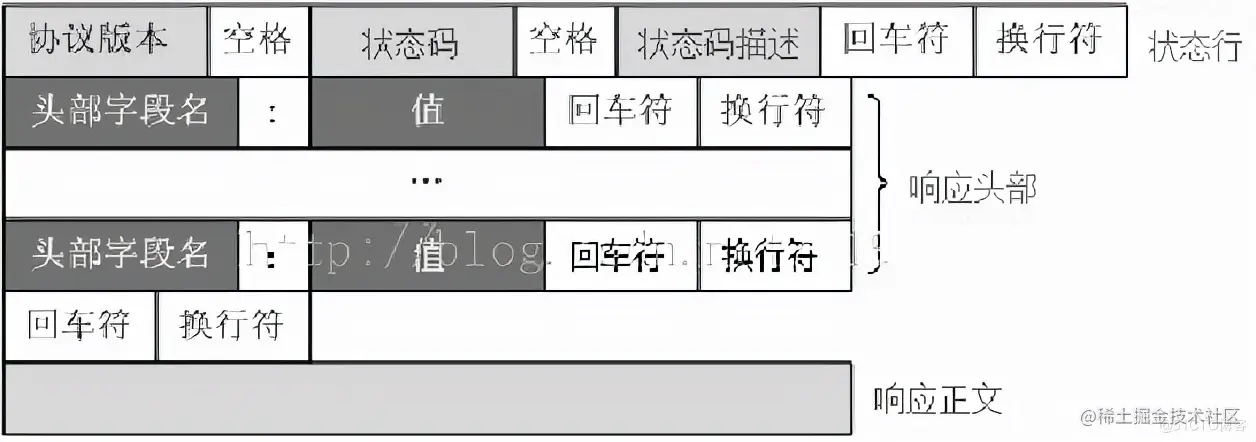 HTTP 响应报文主要由状态行、消息报头、空一行、响应正文 4 部分组成