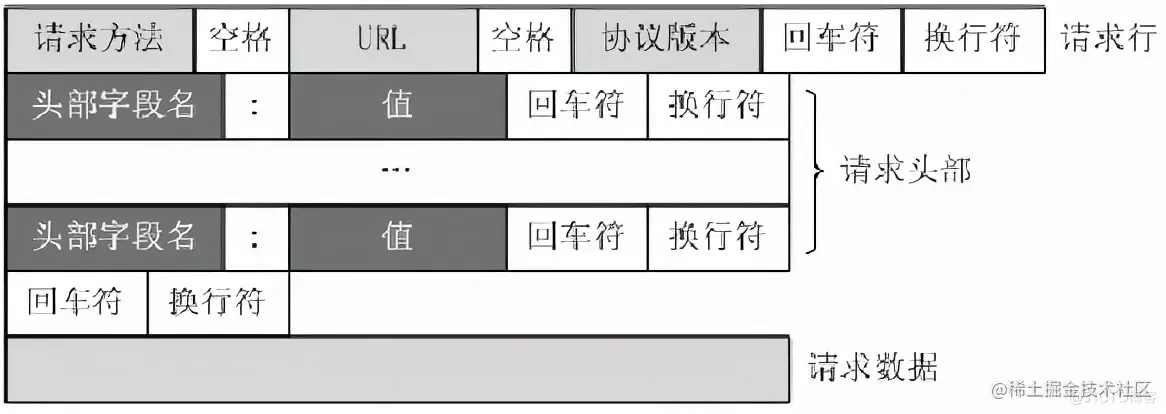 HTTP 请求报文主要由请求行、请求头部、空一行、请求正文(请求体)4 部分组成