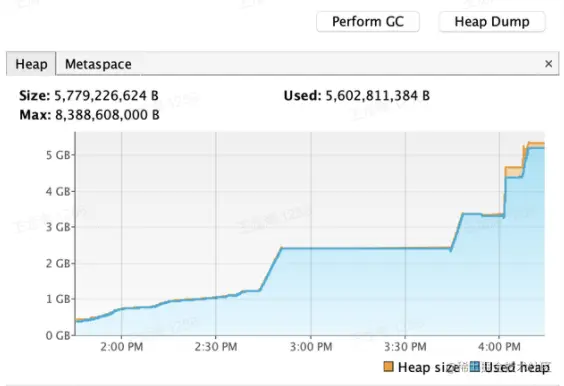 我们开始进行 heap dump,结果如下: