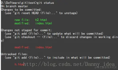 如果我们对里面的index.html文件进行了修改,然后输入git status命令之后,就会发现里面的内容发生了变动
