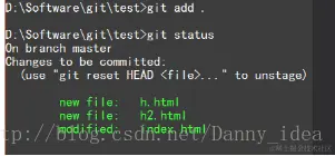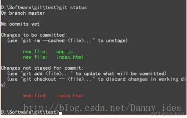 输入命令git status可以查看相应的仓库里面的文件状态: