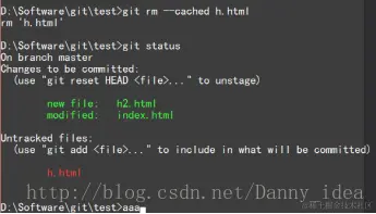 如果需要将缓存对列里面的内容进行删除 rm --cached h.html