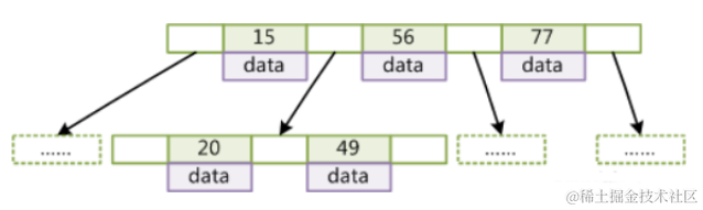 - 非叶子节点不存储data,只存储key,可以增大度的值。