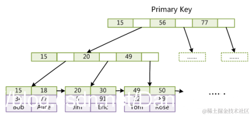 因此innodb里面的非主键索引(辅助索引)和主键索引有一定的区别,下边我们来用图例进行详细对比说明: