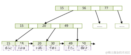 btree数据结构通过节点的横向扩展,从而压低整个Btree的高度,减少了节点io读取的次数。通常百万级别的数据会被压到3-5层的高度。