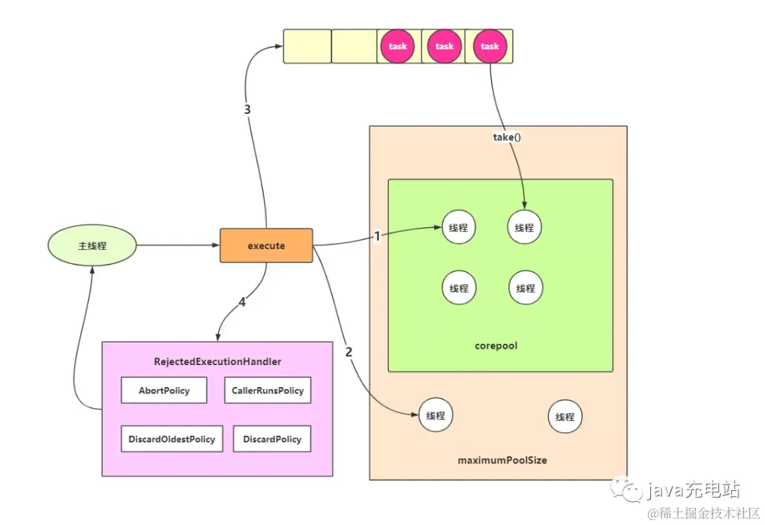 首先我们通过execute或者submit的形式将任务加入到线程池里面,然后会有以下的几种情况: