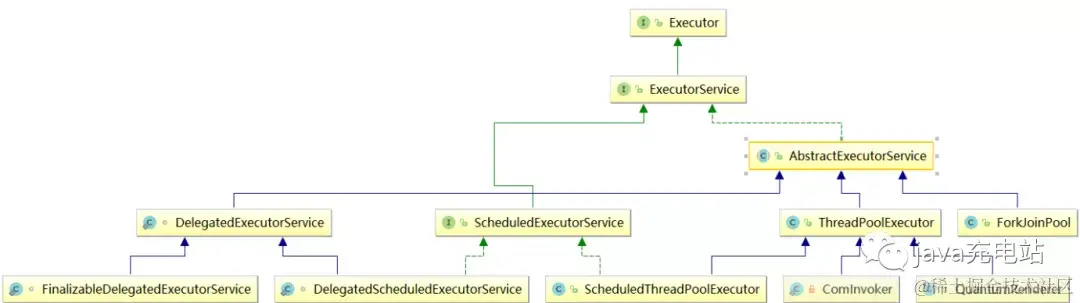 我们从整个Execute的框构来看,Executor接口底下有着非常多的继承和实现。