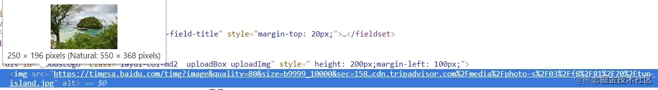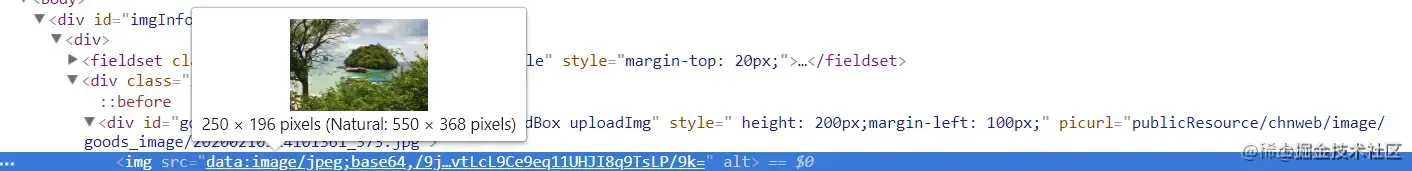 在onload这个钩子对上传的图片实现了预览,并且进行了图片压缩处理。通过readAsDataURL()方法进行了文件的读取,并且通过result属性拿到了图片的Base64(DataURL)格式的数据,然后通过该数据实现了图片预览的功能。有的同学看到这里是不是有点好奇,为什么拿到了这个Base64(DataURL)格式的数据就能直接展示处图片了呢?不要紧,往下看,我会在后文中解释这个DataURL格式的神奇。