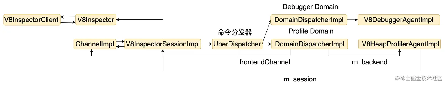V8 Inspector 的设计和实现上比较复杂,对象间关系错综复杂。因为 V8 提供调试和诊断 JS 的文档似乎不多,也不是很完善,就是简单描述一下命令是干啥的,很多时候不一定够用,了解了具体实现后,后续碰到问题,可以自己去看具体实现。