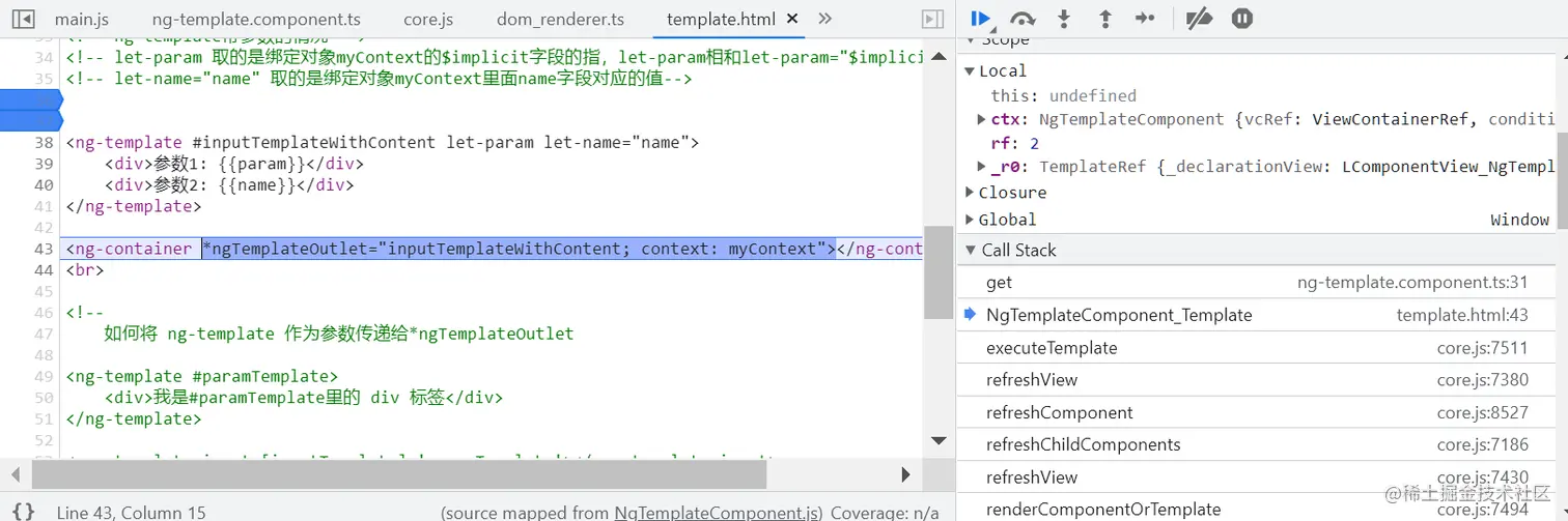 我使用如下代码,期望在使用 *ngTemplateOutlet 指令动态创建 template 实例时,能够进行参数传递:
