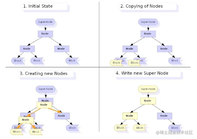 Linux 等的文件管理系统使用了写时复制策略