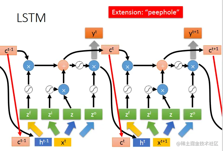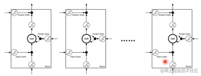 从上图可以看出有两份copies,一份传输给下一步,一份成为LSTM的输出。