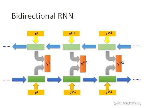 可以同时训练两个RNN,一个正向,一个逆向,然后将这两个RNN的hidden layer拿出来,都接给一个output layer,的到最后的y.