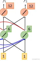 这时绿色的neuron的输入有四个,[1 1]和memory的[2 2],由于weight都是1,所以此时neuron的输出是2+2+1+1=6,红色的neuron的输出是6+6=12,所以当第二次输入[1 1]时,输出就是[12 12].