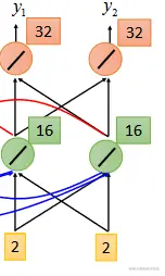 它考虑四个input,2 2 6 6,绿色neuron的output为2+2+6+6=16,红色neuron的output为16+16=32,