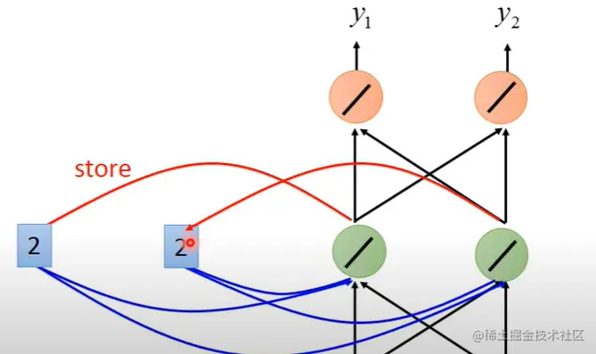 假设上图中的network,其所有weight都为1,所有的neuron都没有任何bias值,假设所有的activation function都是linear的.现假设input是一个sequence,即input是[1 1],[1 1],[2 2],将这个sequence input到这个RNN中去,在使用RNN的时候要给memory赋初始值,在此题中,假设在还没有放进任何东西之前,给memory的起始值为0.