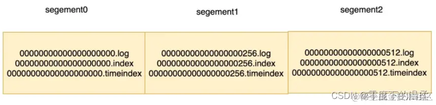 注意每个 LogSegment 中不只包含“.log”“.index”“.timeindex”这 3 种文件,还可能包含“.deleted”“.cleaned”“.swap”等临时文件,以及可能的“.snapshot”“.txnindex”“leader-epoch-checkpoint”等文件。
