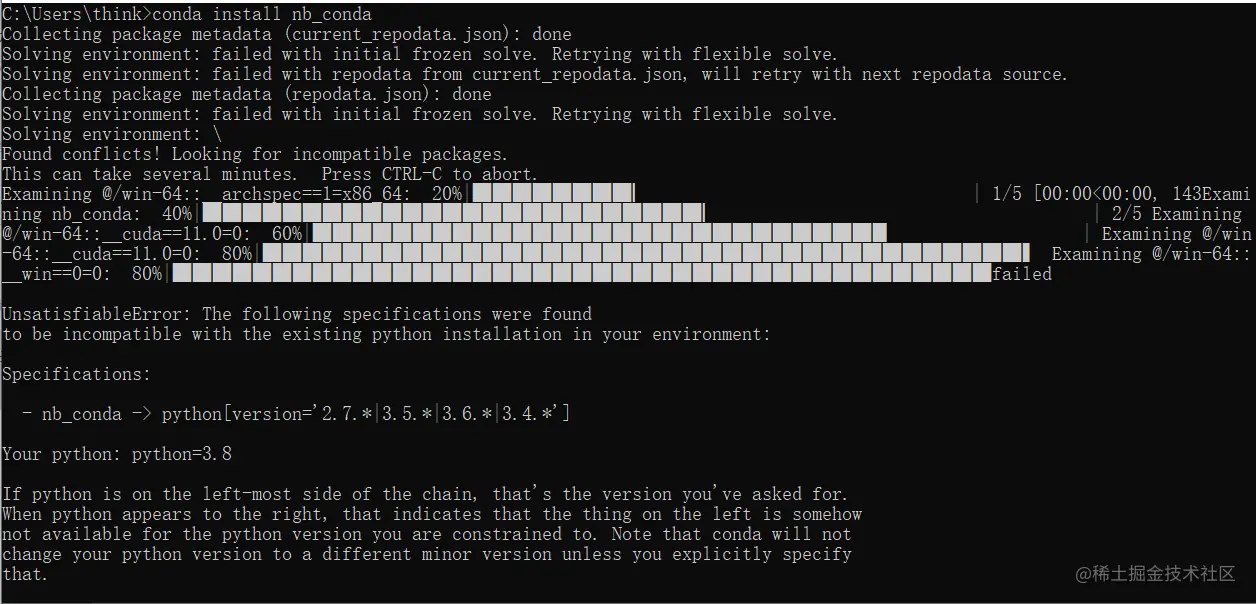 执行下面命令将conda环境关联到Jupyter,便于你在jupyterNotebook的使用中, 在不同环境中创建笔记本进行工作。conda install nb_conda -