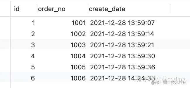 然后,先 t_order 表里现在已经有了 6 条记录: