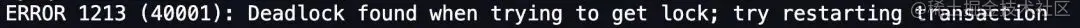 innodb_deadlock_detect设置为 on,表示开启这个逻辑,默认就开启。当检测到死锁后,就会出现下面这个提示: