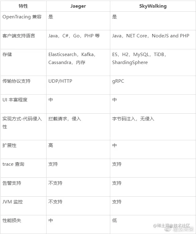 表 5 分布式追踪组件对照表