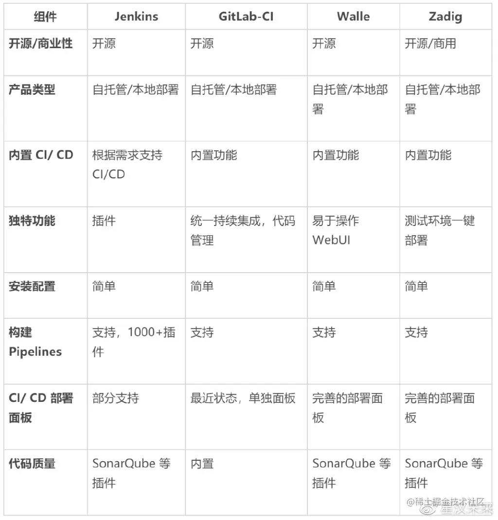 常用集成流水线工具如下表所示: