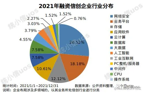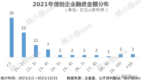 据统小信uos不完全统计,2021年信创领域共发生132起融资事件,涉及105家企业。