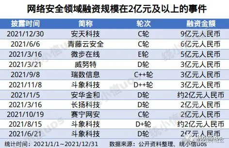 随着数字经济时代的到来,数据已成为继土地、劳动力、资本、技术之后的第五大生产要素,2021年《数据安全法》、《个人信息保护法》的相继落地,更是把数据安全推到了前所未有的高度,与此同时,数据安全领域的投资也跟着水涨船高。据不完全统计,2021年共有7家专注数据安全领域的信创企业参与融资,包括:安华金和、数安行、美创科技、杭州熙菱、聚铭网络、斗象科技和派拉软件,累计融资额不少于10亿元人民币,其中斗象科技年内历经3轮融资,并获得国资背景的机构注入,融资规模约7亿元人民币。