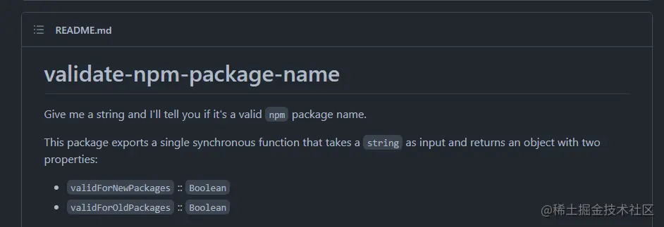 顾名思义 validate-npm-package-name 验证包名称,那到底是不是呢?去Github看一下。
