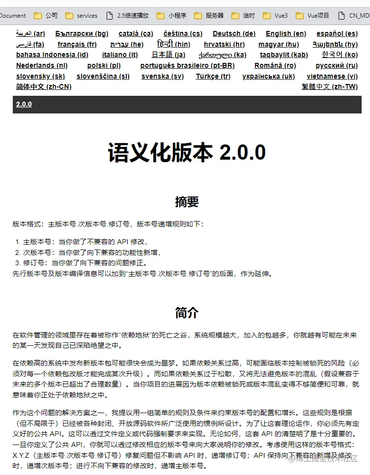 - SemVer文档 语义化版本控制规范 2.0.0