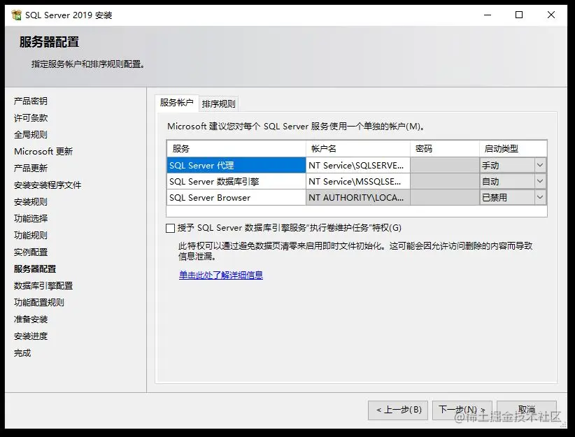 - 在“数据库引擎配置”界面: